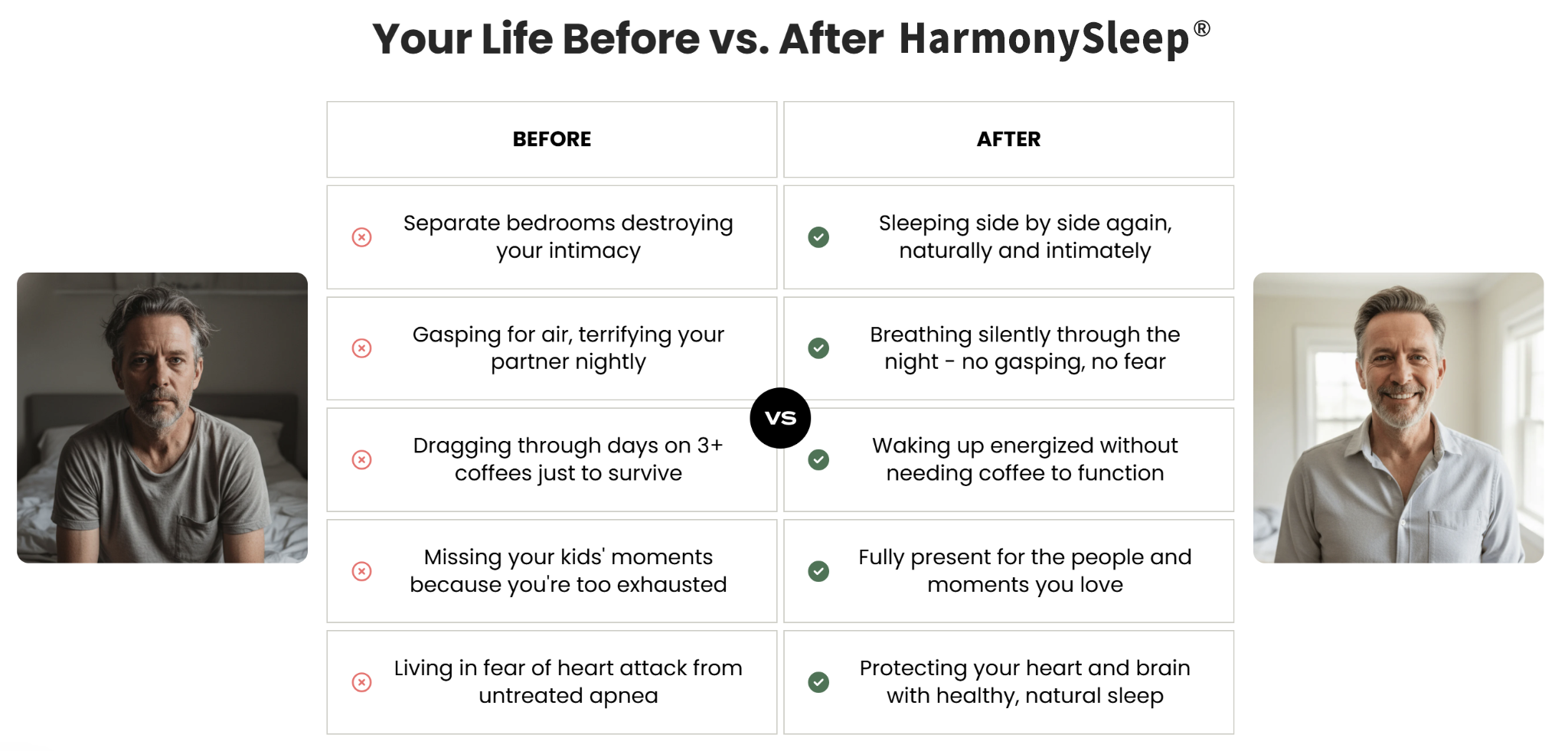 HarmonySleepยฎ opens your breathing pathways and eliminates sleep apnea โ so you fall asleep deeply, naturally, every night.