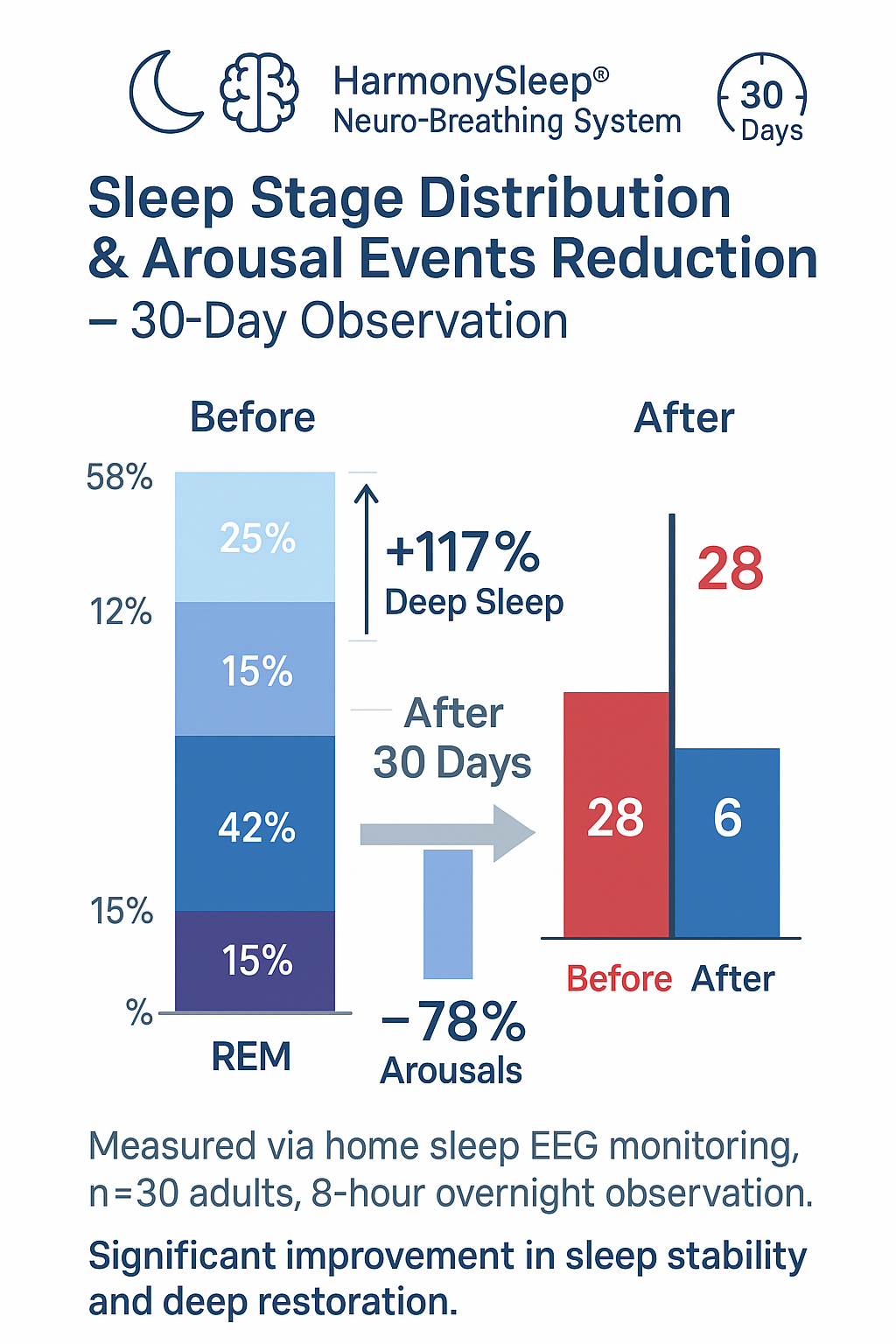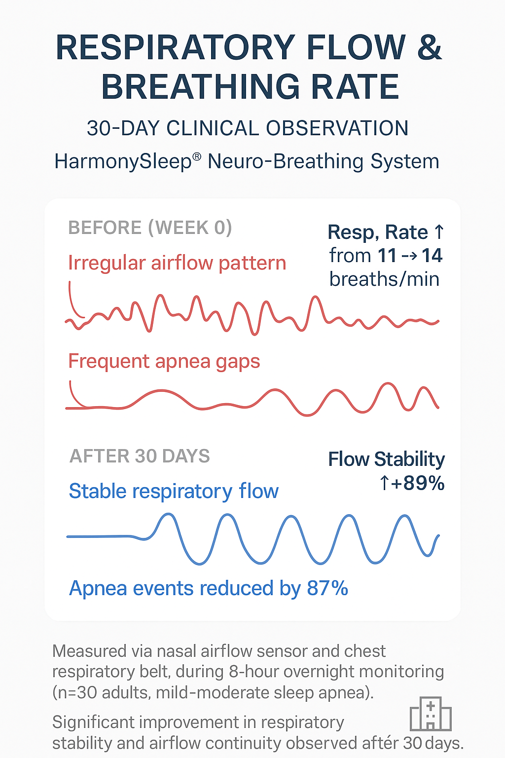 During this period, the system works to rebalance the autonomic nervous system, stabilize airflow, and promote deeper, longer sleep cycles through neuro-breathing adaptation.